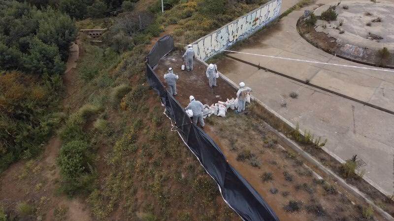 Como parte de las actividades aprobadas en la RCA, se realizó la remoción de infraestructura remanente en el paño sur alto. En ese marco, por tratarse de estructura previa al 2001, una empresa especializada llevó a cabo la inspección para la detección y recolección de residuos de asbesto, siguiendo un estricto protocolo sanitario mandatado por Ministerio de Salud, que permiten implementar todos los resguardos para su control, manejo y disposición.